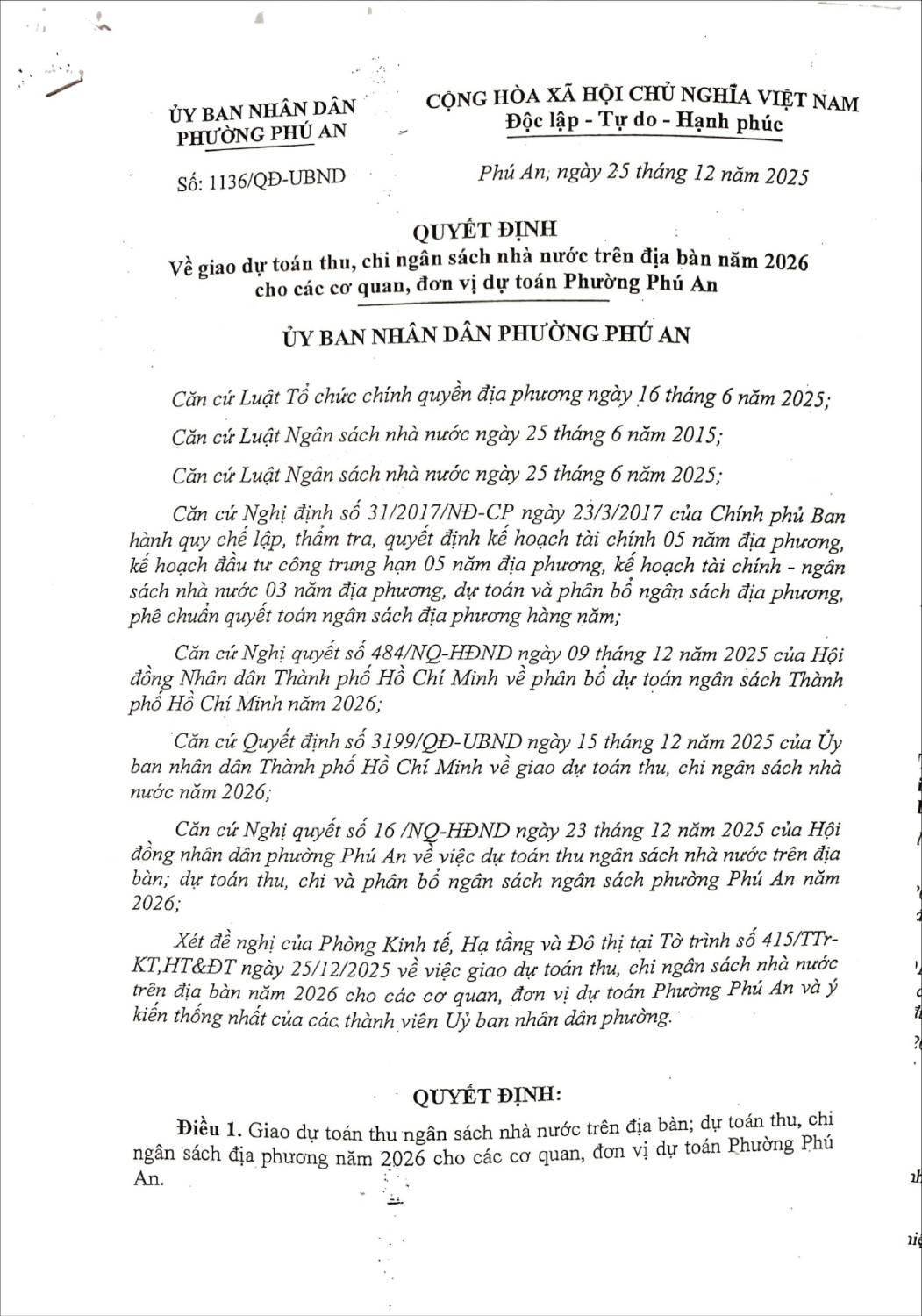 Quyết định công bố công khai dự toán thu chi ngân sách nhà nước năm 2025