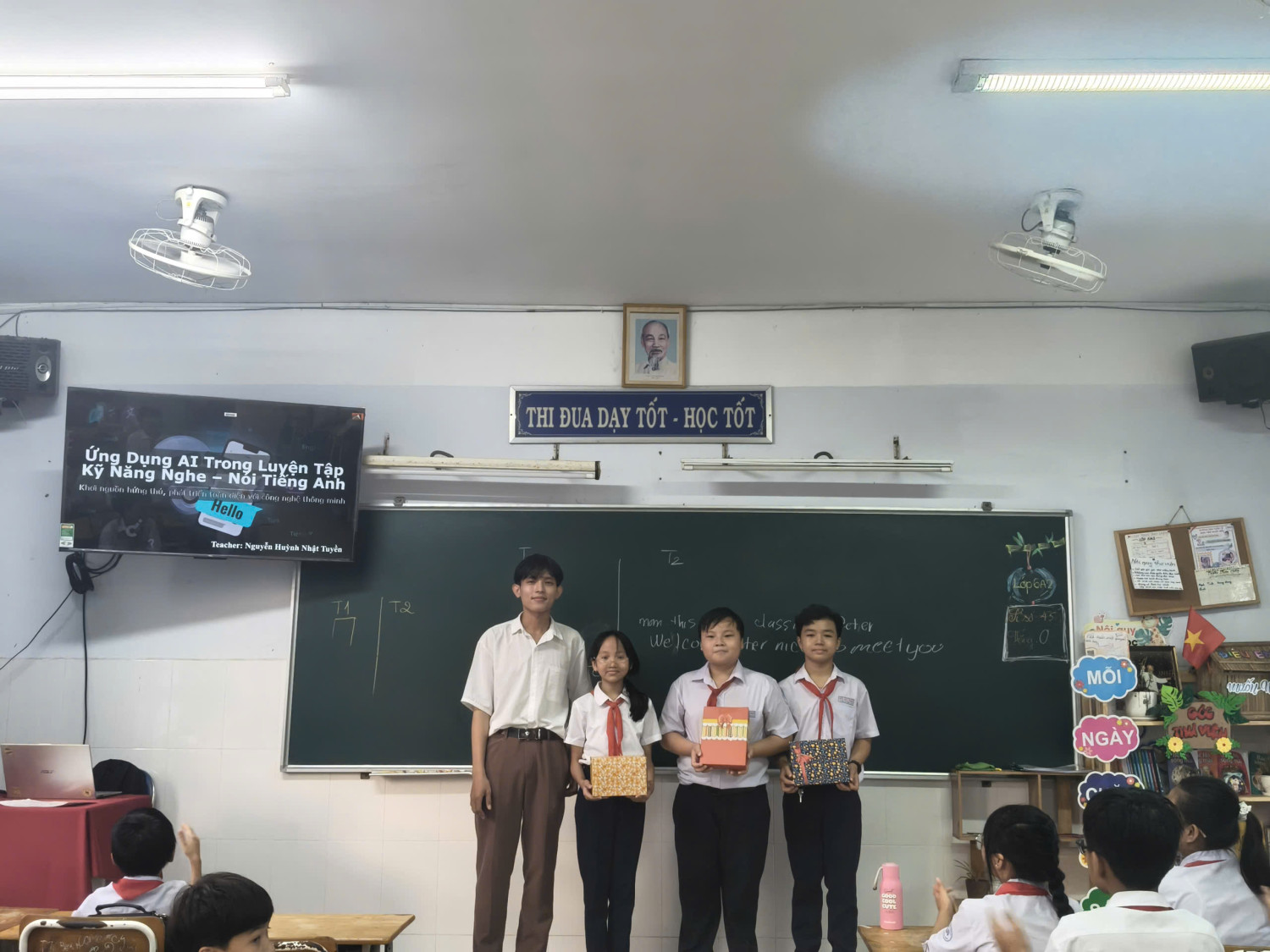 Giáo viên giới thiệu các công cụ AI như phần mềm nhận diện giọng nói, AI luyện phát âm, trợ lý hội thoại ảo, giúp học sinh thực hành nghe – nói với độ chính xác cao và phản hồi tức thời.
