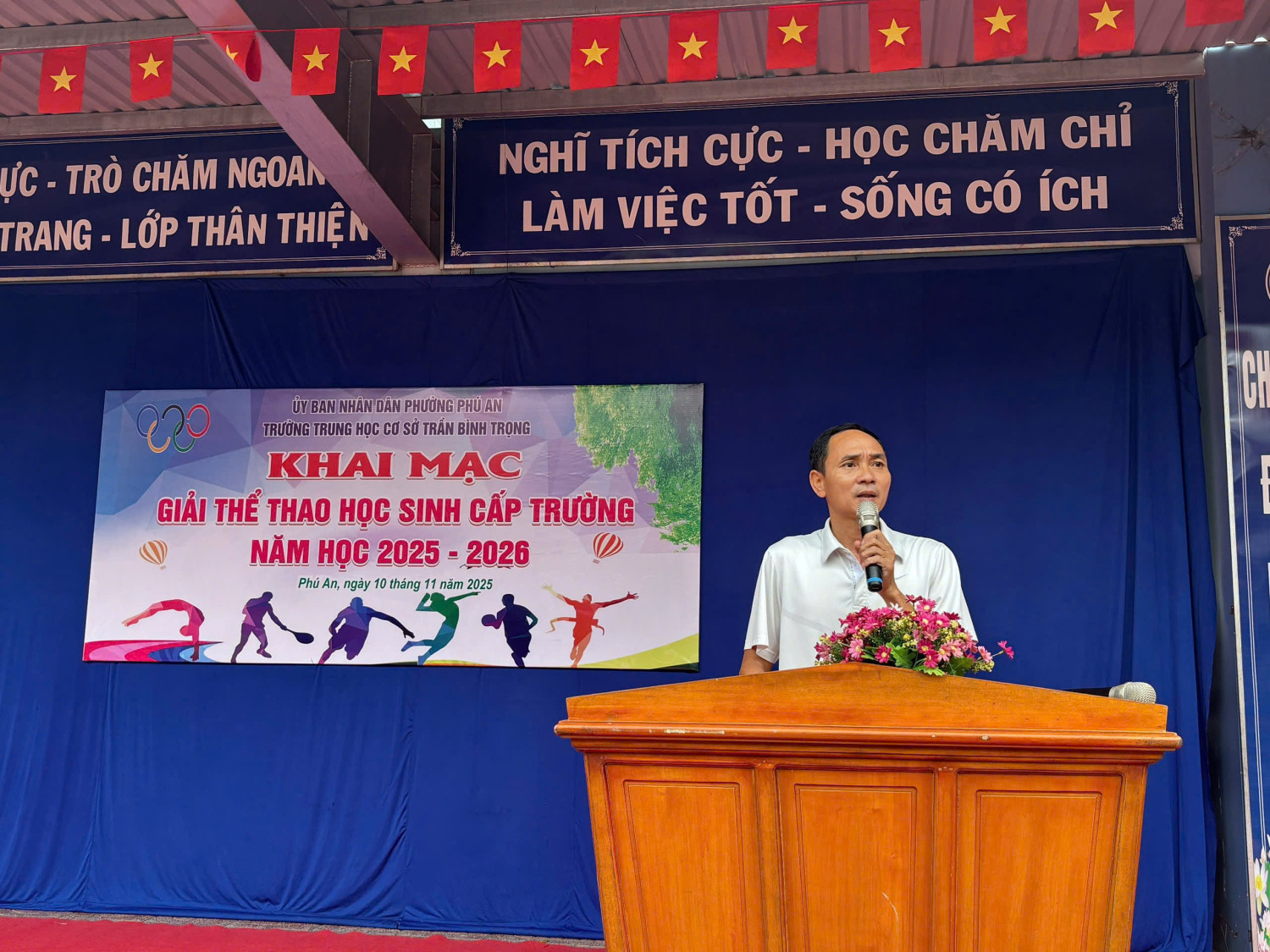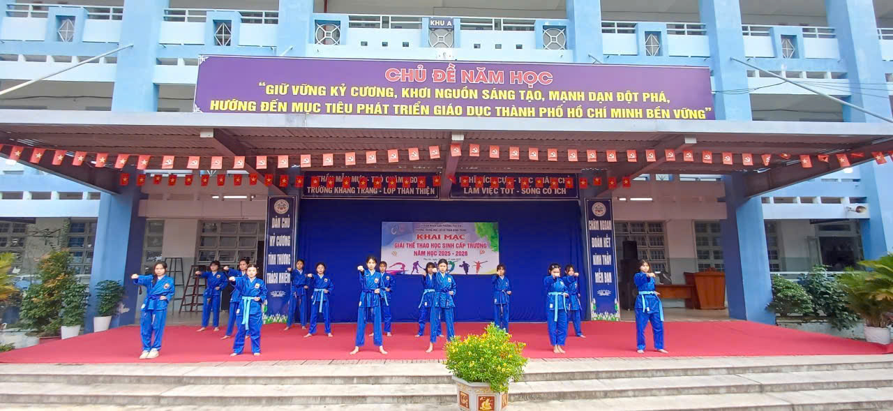 Sáng ngày 10/11/2025 Trường THCS Trần Bình Trọng chính thức khai mạc Giải Thể thao Học sinh cấp trường năm học 2025-2026 trong không khí tưng bừng, rực lửa nhiệt huyết tuổi trẻ. Buổi lễ có sự tham gia đầy đủ của cán bộ, giáo viên và toàn thể học sinh nhà trường.