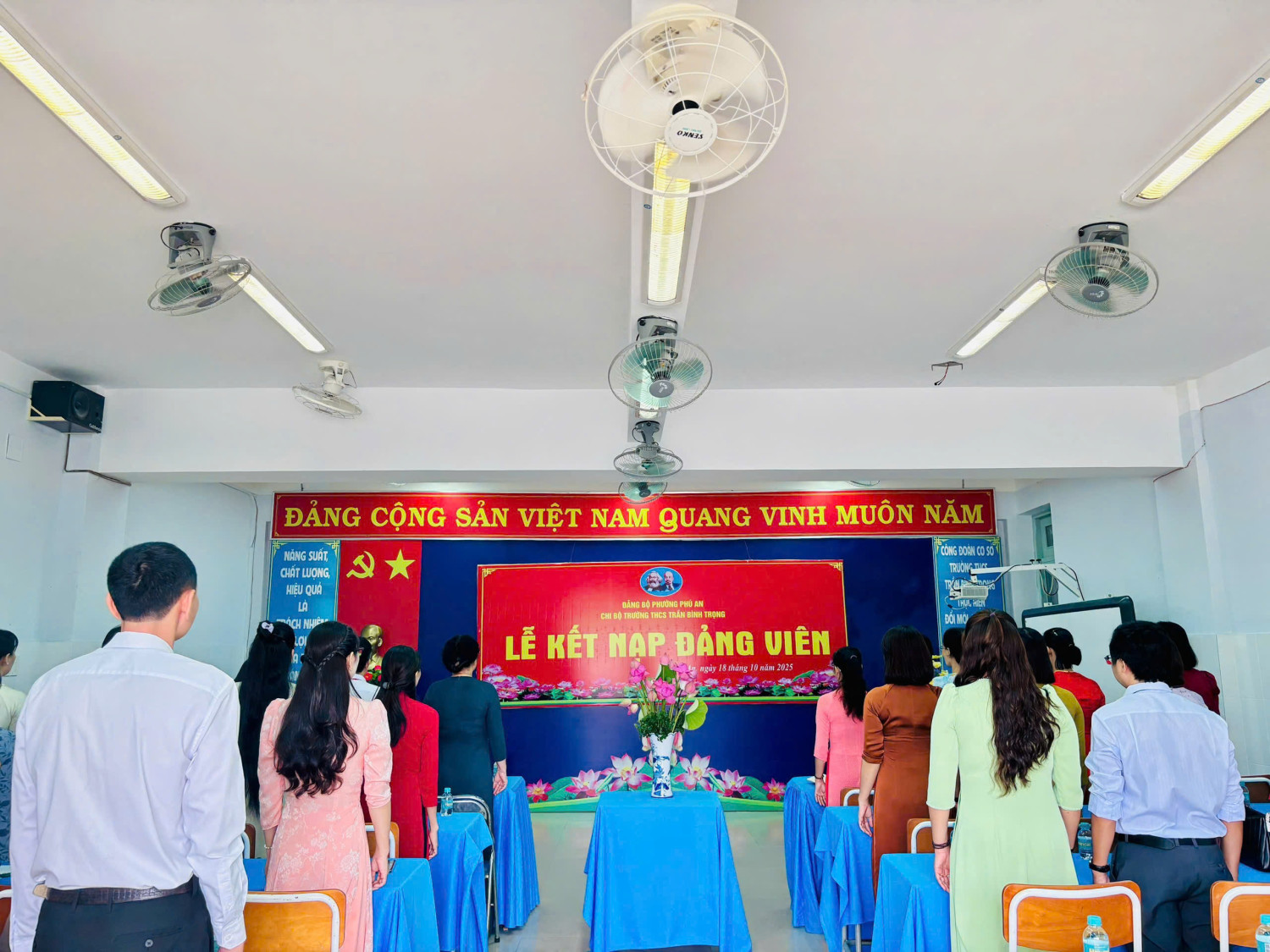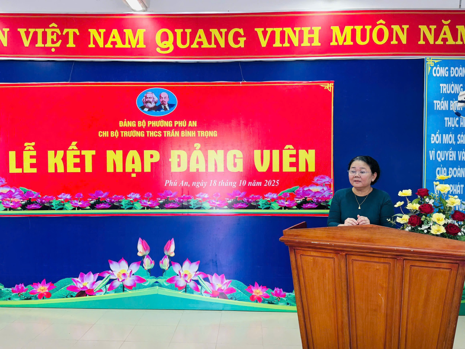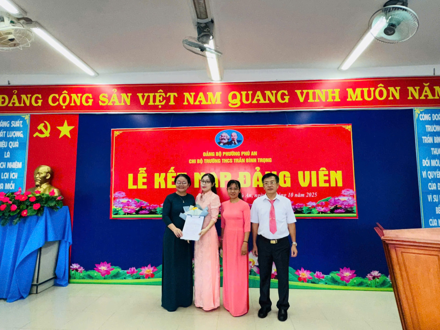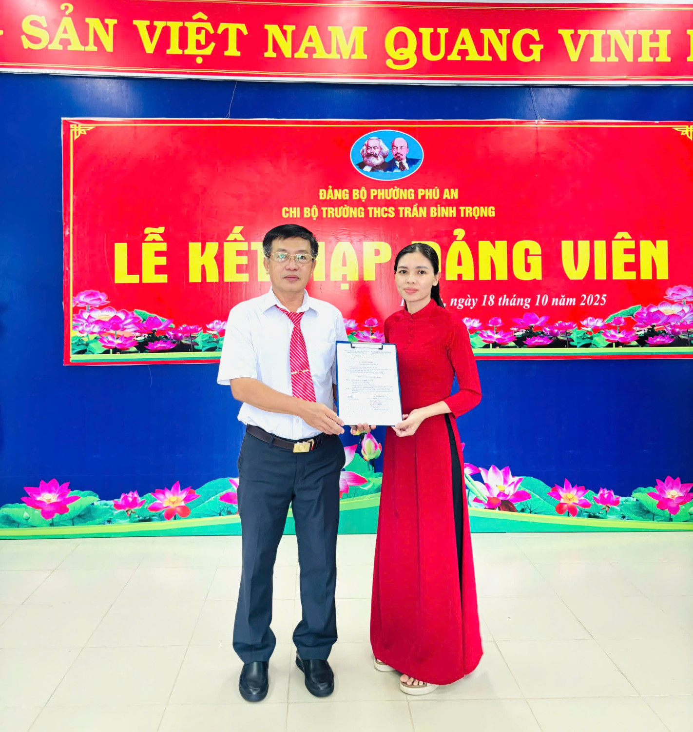 Sáng ngày 18 /10/2025, Chi bộ trường THCS Trần Bình Trọng long trọng tổ chức Lễ kết nạp Đảng viên cho quần chúng Nguyễn Thị Quỳnh Vân và trao Quyết định công nhận Đảng viên chính thức cho đồng chí Nguyễn Thị Anh.