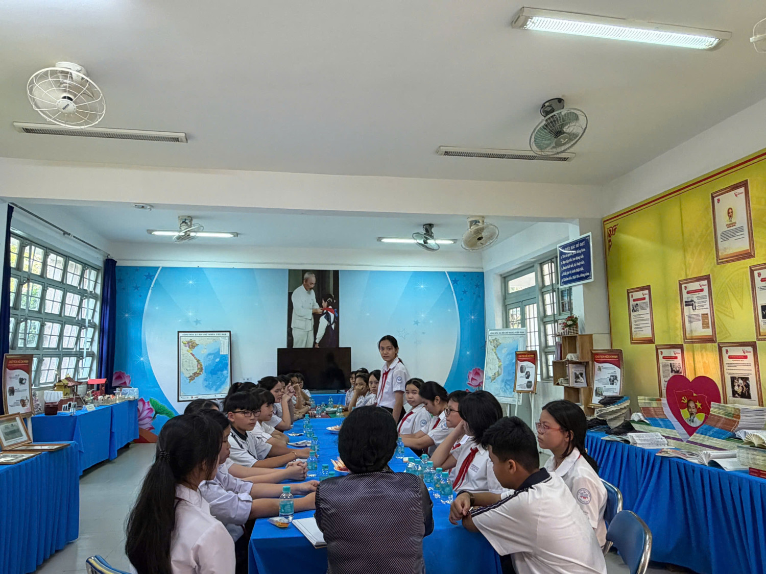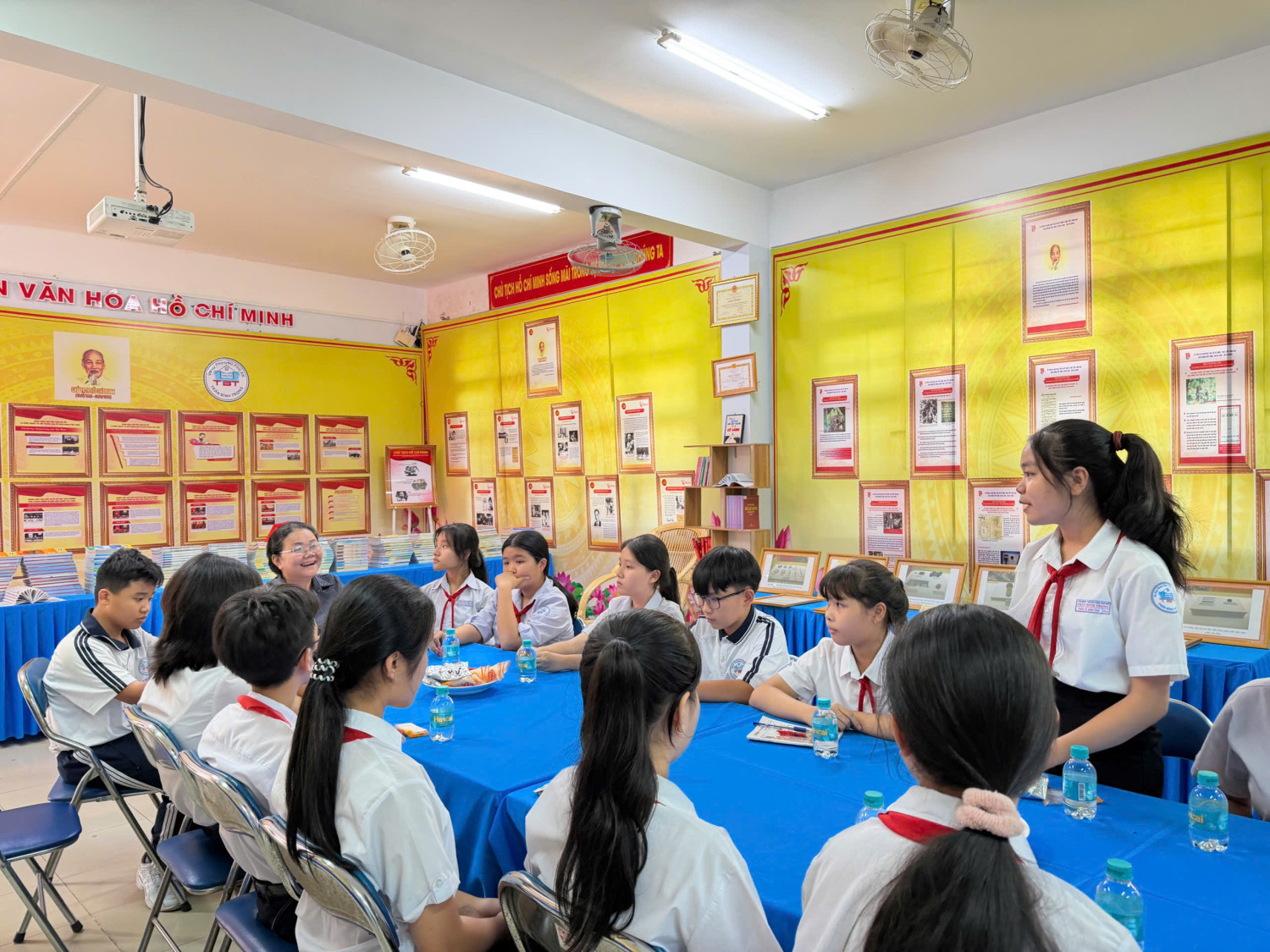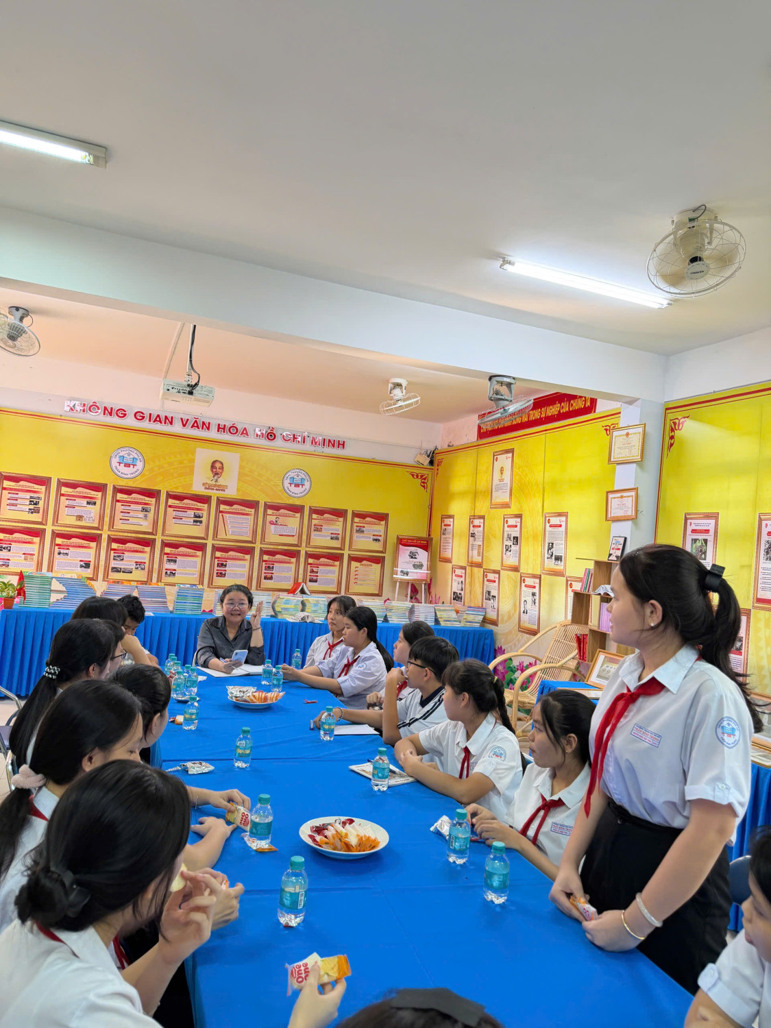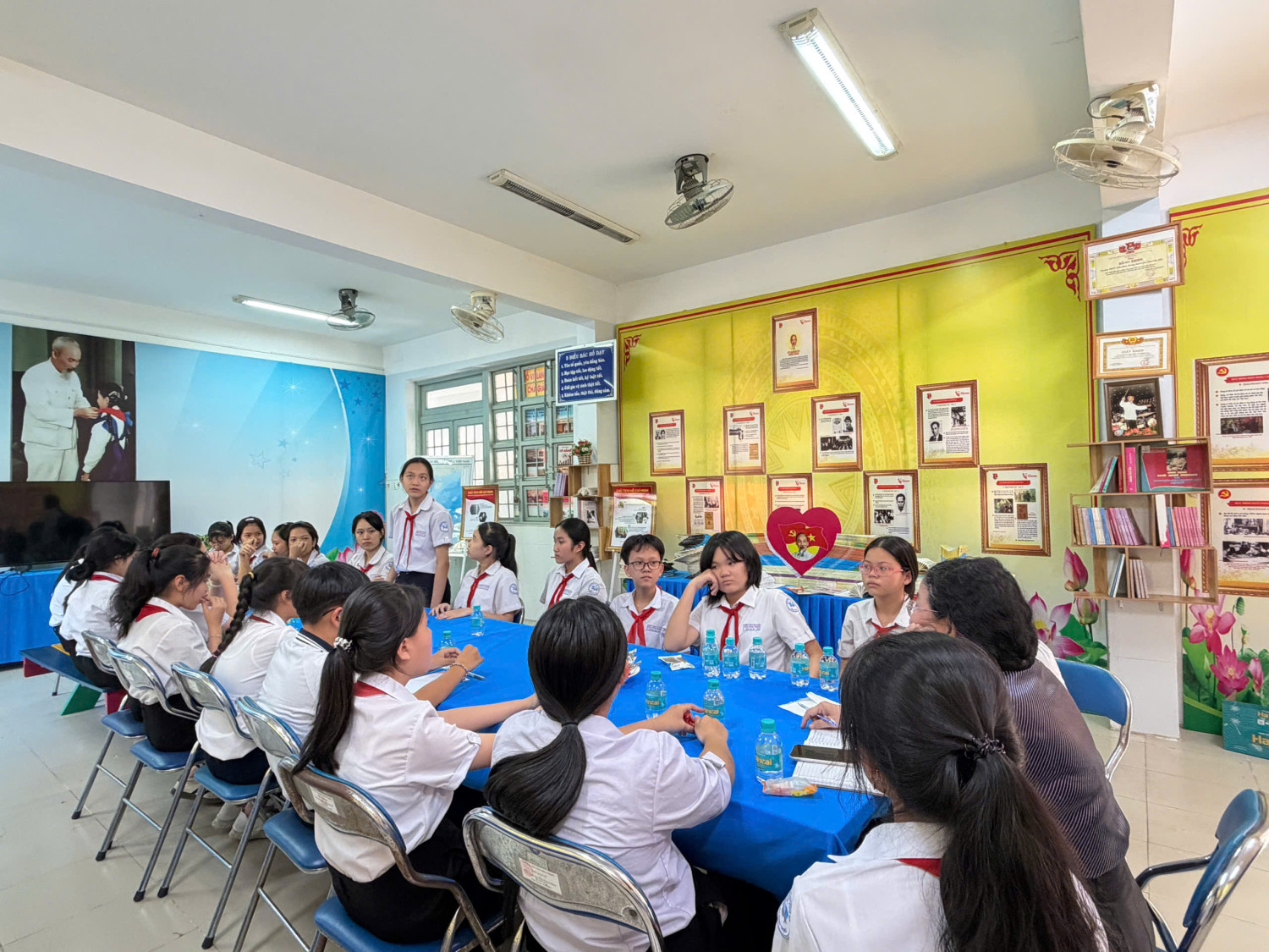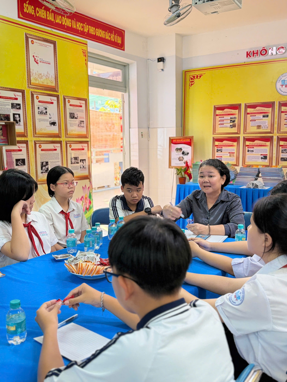 Mỗi giờ ra chơi thứ tư hàng tuần, tại Trường THCS Trần Bình Trọng lại diễn ra một hoạt động đặc biệt và đầy ý nghĩa mang tên “Viên kẹo ngọt ngào giờ ra chơi”. Đây là một mô hình sáng tạo, được triển khai nhằm tạo cơ hội cho Ban Giám hiệu nhà trường gặp gỡ, giao lưu và trao đổi trực tiếp với Ban cán sự của 23 lớp trong toàn trường tại phòng không gian văn hoá Hồ Chí Minh.