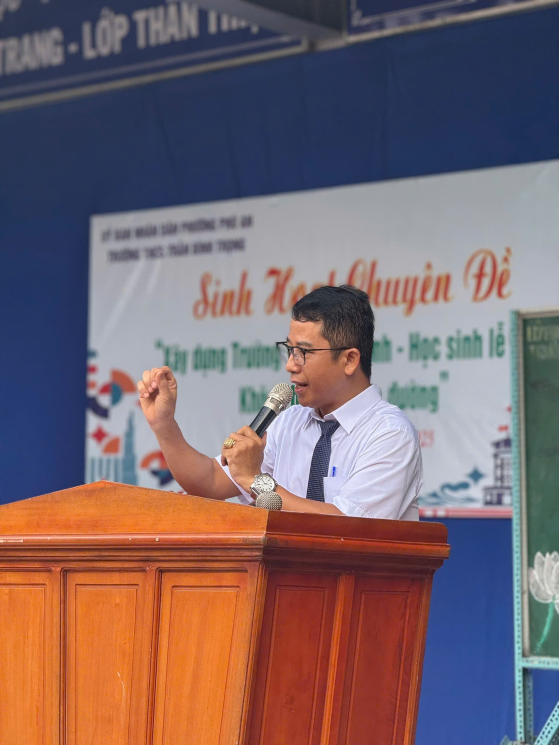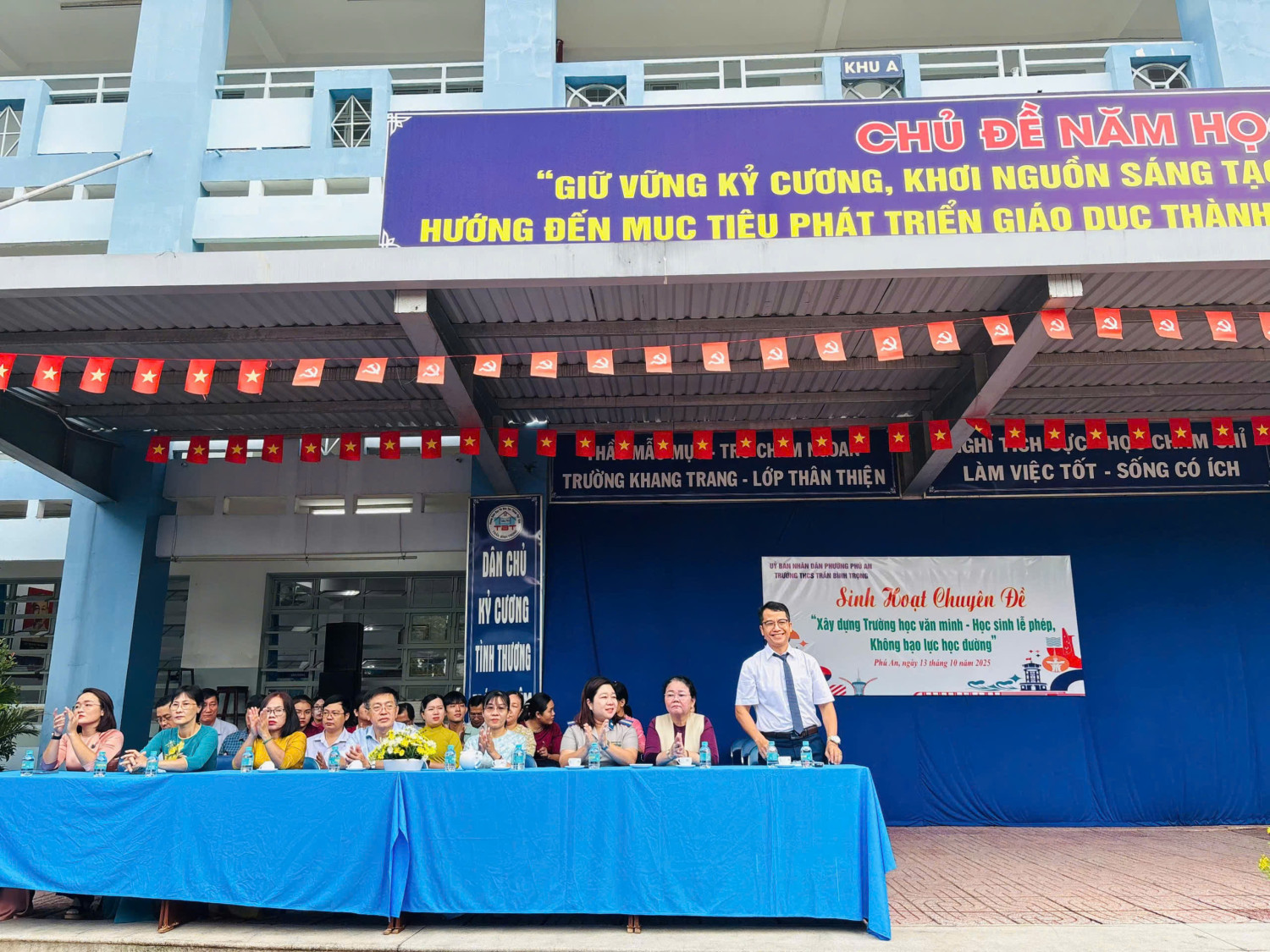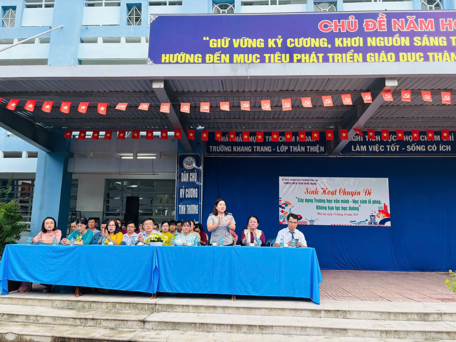 Sáng ngày 13 tháng 10 năm 2025 Trường THCS Trần Bình Trọng đã tổ chức thành công buổi Sinh hoạt Chuyên đề với nội dung trọng tâm: “Xây dựng Trường học văn minh - Học sinh lễ phép, Không bạo lực học đường”. Tới tham dự buổi sinh hoạt chuyên đề có sự góp mặt của Bà: Nguyễn Thị Yến Thi – Phó Ban đại diện Cha mẹ học sinh