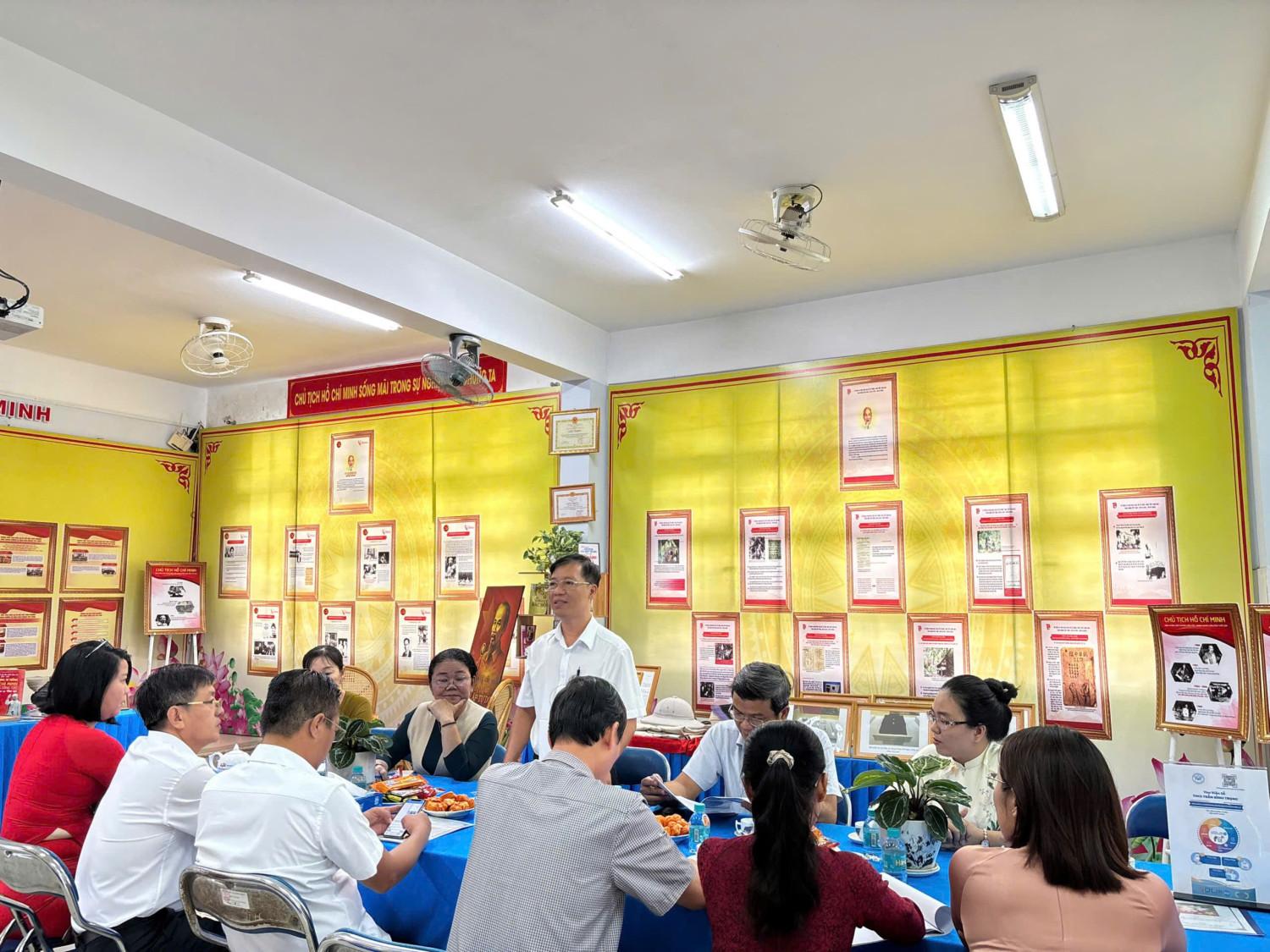 Tại buổi làm việc, đồng chí Nguyễn Thị Ngọc Phương – Bí thư Chi bộ, Hiệu trưởng đã báo cáo khái quát quá trình xây dựng và triển khai mô hình “Không gian Văn hóa Hồ Chí Minh”. Theo đó, Chi bộ nhà trường đã lãnh đạo, chỉ đạo triển khai mô hình nghiêm túc, đồng bộ, có trọng tâm, trọng điểm, phù hợp với điều kiện thực tế và đặc thù môi trường giáo dục; nội dung thực hiện thiết thực, gắn chặt với nhiệm vụ chính trị và nhiệm vụ chuyên môn.