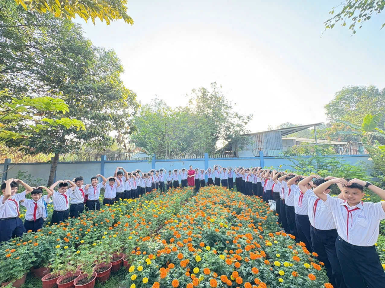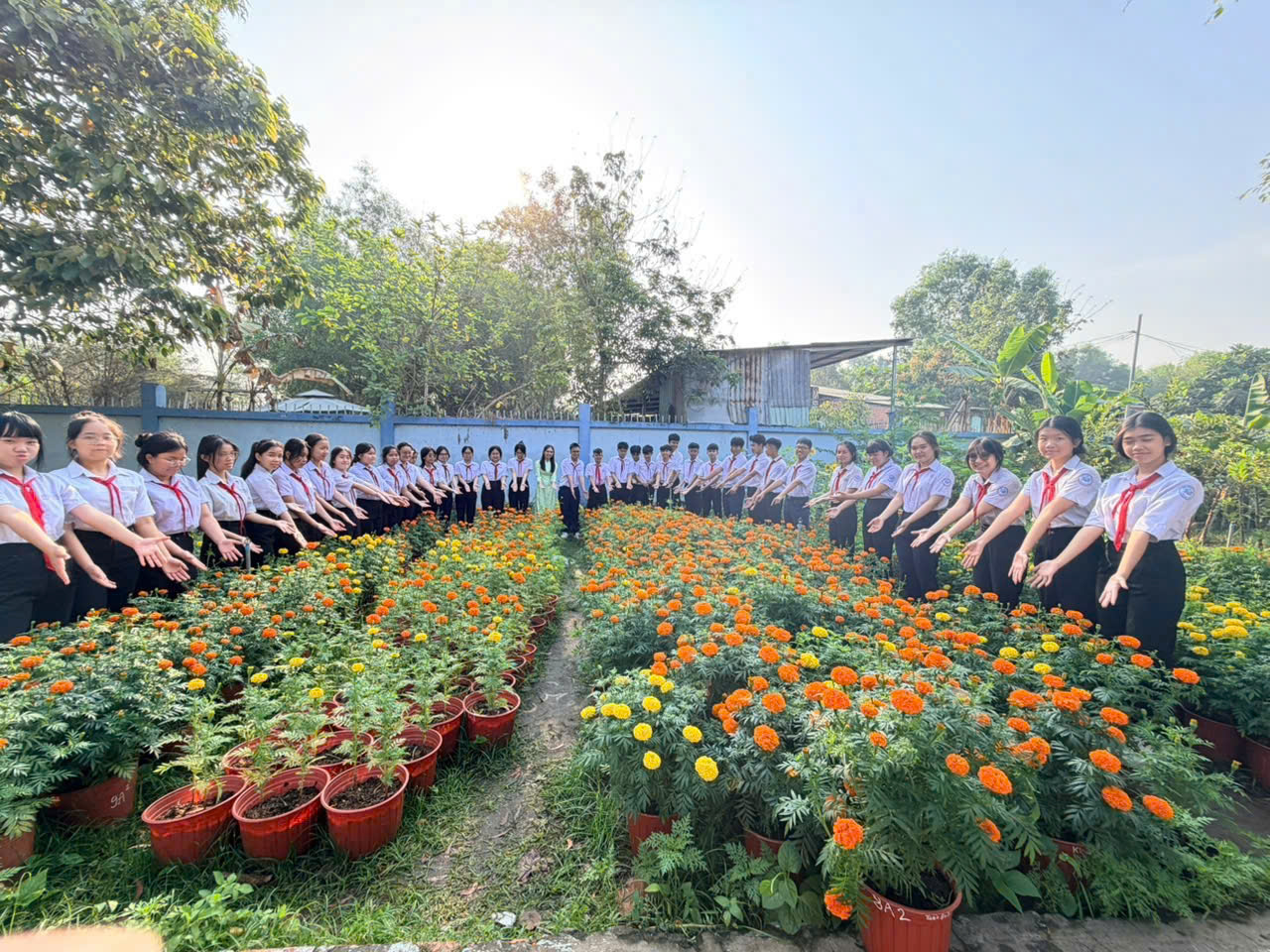 Thực hiện mô hình “Đưa thiên nhiên vào sân trường và lớp học”, Trường THCS Trần Bình Trọng đã phát huy sự tham gia tích cực của các tổ chuyên môn và các lớp học, góp phần xây dựng môi trường giáo dục xanh – sạch – đẹp, thân thiện và gần gũi với thiên nhiên. Hưởng ứng phong trào đón Tết Nguyên đán, nhà trường tổ chức cho các tổ, các lớp trồng và chăm sóc vườn hoa thọ trong khuôn viên trường. Dưới sự hướng dẫn của thầy cô, học sinh tích cực tham gia làm đất, trồng cây, tưới nước và chăm sóc hoa. Những luống hoa thọ nở rộ đúng dịp Tết đã tạo nên không gian học đường rực rỡ sắc xuân, góp phần làm đẹp cảnh quan nhà trường. Hoạt động trồng hoa thọ không chỉ mang ý nghĩa trang trí đón Tết mà còn giúp học sinh nâng cao ý thức bảo vệ môi trường, rèn luyện tinh thần trách nhiệm, yêu lao động và trân trọng giá trị truyền thống dân tộc. Qua đó, mô hình tiếp tục được duy trì hiệu quả, góp phần xây dựng Trường THCS Trần Bình Trọng trở thành ngôi trường xanh, thân thiện và hạnh phúc.