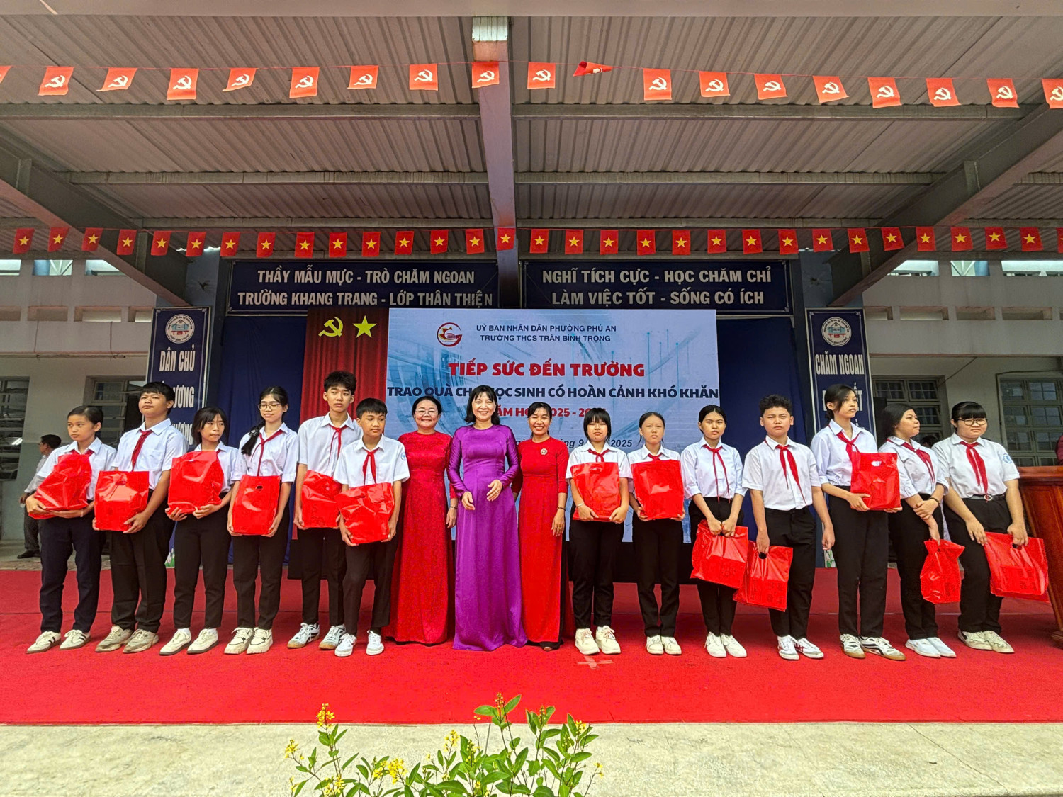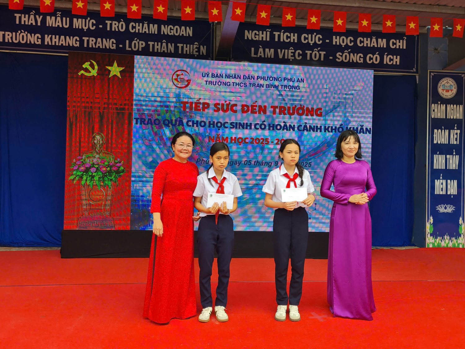 Tại buổi lễ , nhằm tạo động lực và tiếp sức cho những em học sinh có hoàn cảnh khó khăn tiếp tục đến trường, nỗ lực học tập để thực hiện ước mơ của mình, đồng hành với lễ khai giảng năm học mới, Nhà trường đã trao học bổng của Hội khuyến học Thành phố Hồ Chí Minh, học bổng của Uỷ ban nhân dân phường Phú An và những phần quà của Trường, Quý mạnh Thường quân trao tặng.