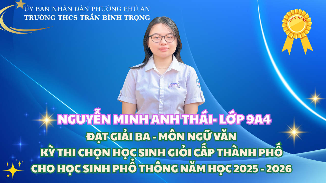 🥉 Nguyễn Minh Anh Thái (Lớp 9A4) – Giải Ba môn Ngữ văn