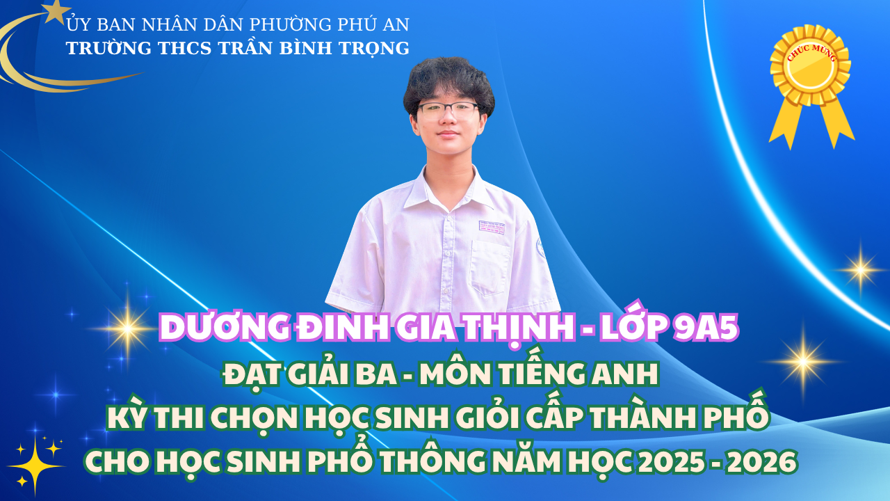 🥉 Dương Đinh Gia Thịnh (Lớp 9A5) – Giải Ba môn Tiếng Anh